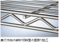 奥行方向の線材の切断面に面取り加工を施し、安全性に配慮しています。