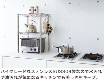 耐食性に優れ、光沢の美しいハイグレードなステンレスSUS304を採用しているので、サビに強く、ステンレス特有の美しい輝きが永く持続します。
