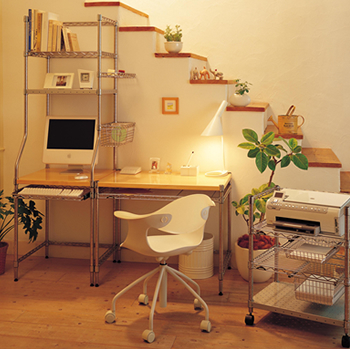 下段の棚の奥行が450mmの場合、上段の棚は奥行が300mm。