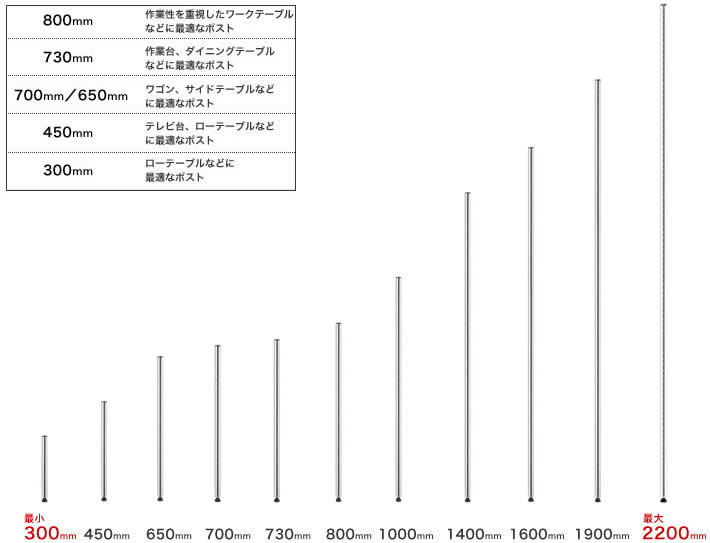 ※高さ2200mmポストは、セーフティポストとの併用をおすすめします。(併用する場合は天井高2350mm以上)