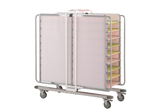 エレクターは、1998年より温冷配膳車用の下膳車「ネスティングトレイカート」を販売しております。