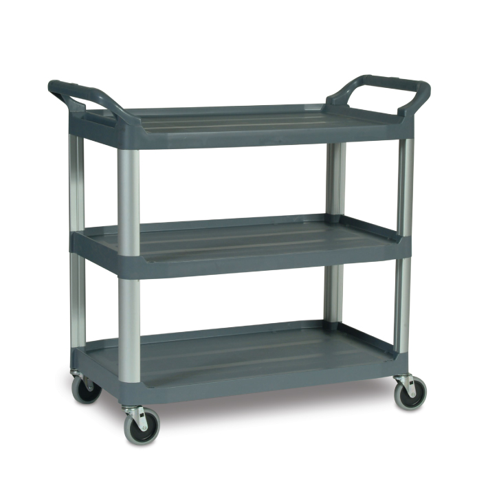 ●カート棚部はポリプロピレン製、柱はスチール製。耐久性に優れています。●棚部分には1/1サイズのホテルパン、またはバスボックスが2個置けます。●棚の四方を落下防止加工。搬送品の落下を防ぎます。●φ102mm4輪自在ゴムキャスターを装備。●米国・ラバーメイド製。
