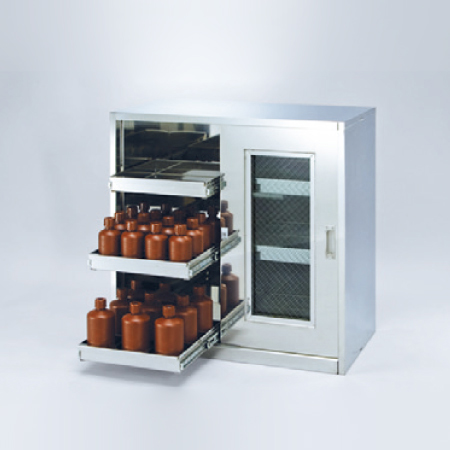 薬液瓶の保管に最適なSUS304(18-8)ステンレス製の保管庫