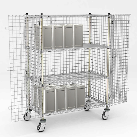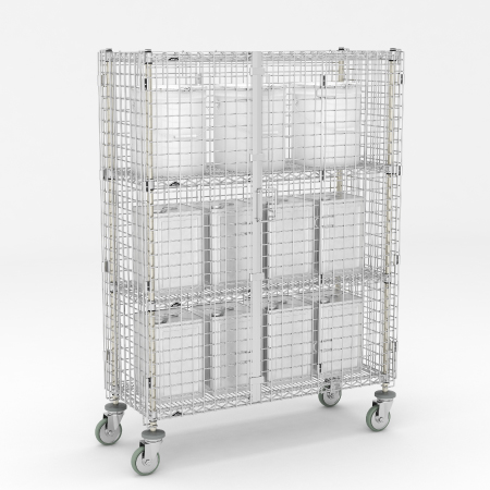 透視管理とセキュリティ管理を両立。エレクターシェルフを50mmピッチのメッシュパネルで囲んだカートです。